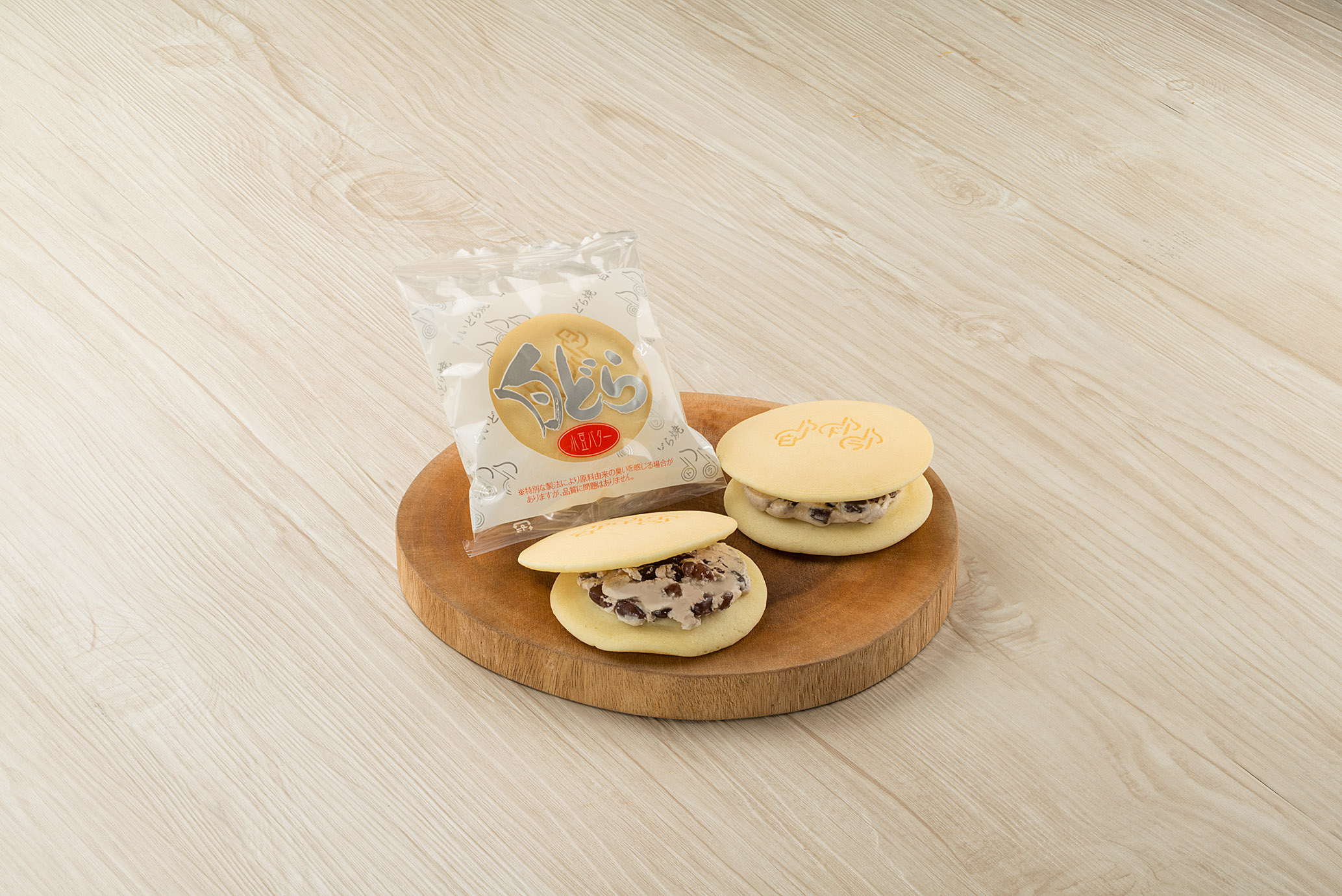 しっとりとした口当たりが優しいふんわりしたこだわりの白皮が目を引く美しい白いどら焼き「白どら」。たっぷりの小豆バターをサンドした、和と洋が上手にまとまった珍しい「どら焼き」です。