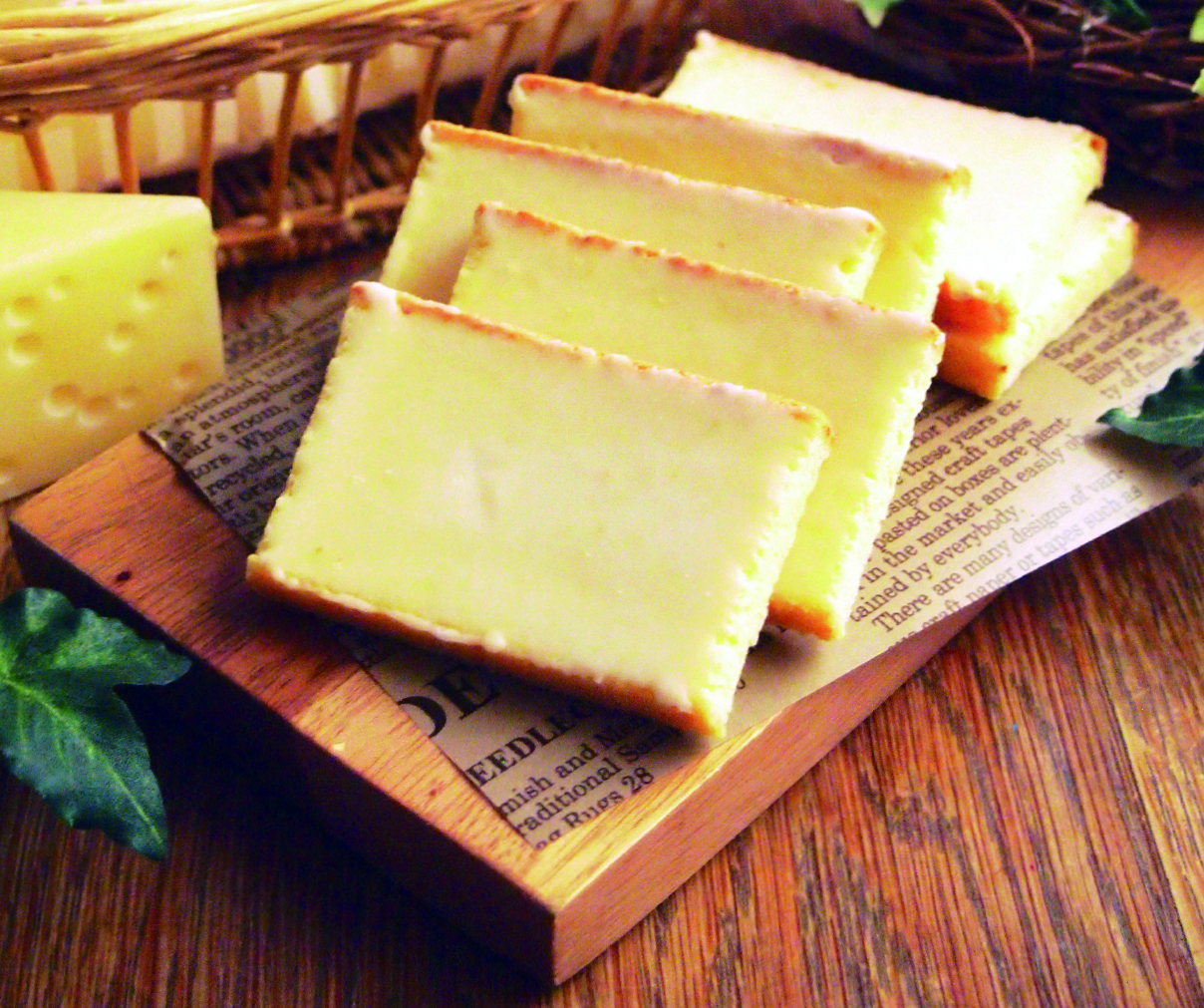 濃厚なチーズケーキを一枚一枚丁寧に手作りした、どこか懐かしい味のチーズケーキラスクです。 パルメザンチーズとエダムチーズの2種類のチーズを使用した、濃厚なチーズケーキを、じっくりと4時間かけてほっこりサクサクのラスクに仕上げました。